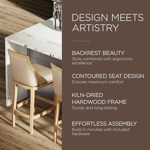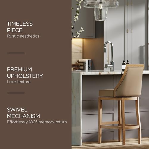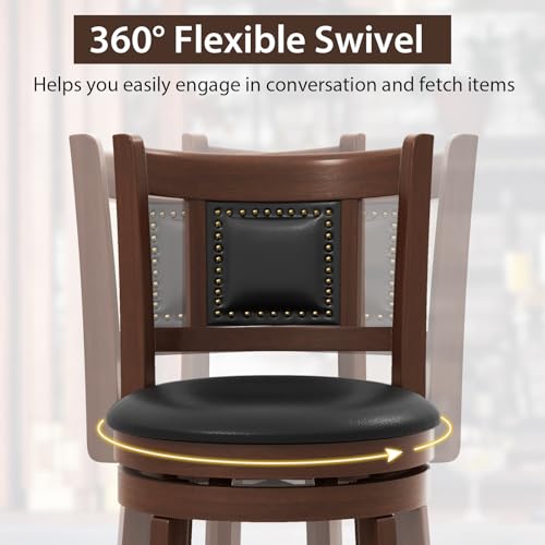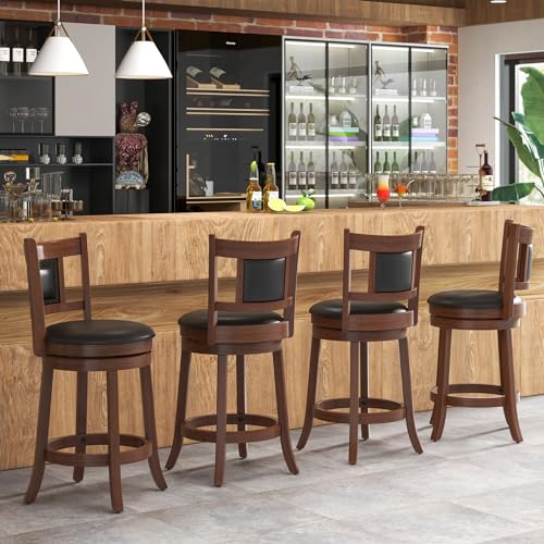 GOFLAME 25.5” Upholstered Bar Stools Set of 4, Swivel Counter Height Barstools with Curved Backrest & Footrest, Solid Rubber Wood Bar Stools for Kitchen Island, Bar Counter, Cafe, Dining Room