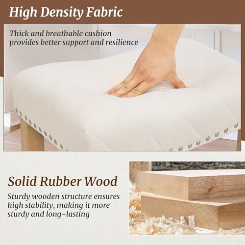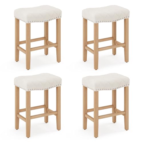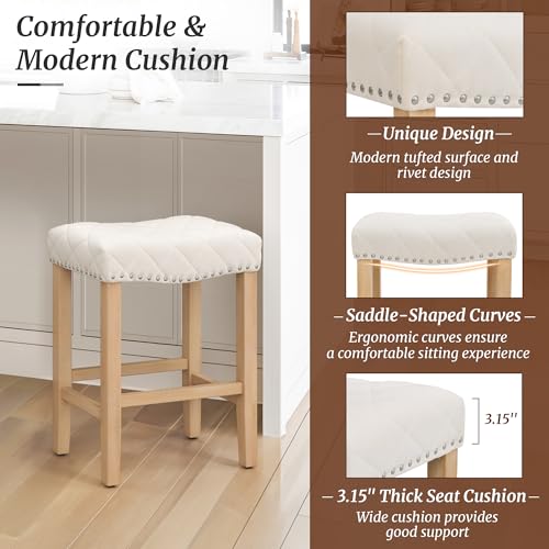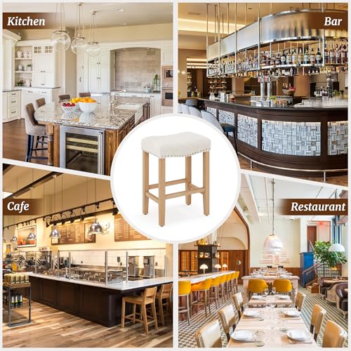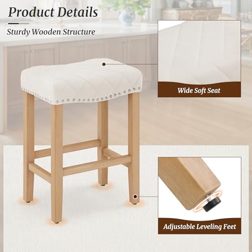 24" Counter Height Bar Stools Set of 2, Backless Counter Stools with Wooden Legs, Breathable Fabric Stools for Kitchen Island Counter, Beige