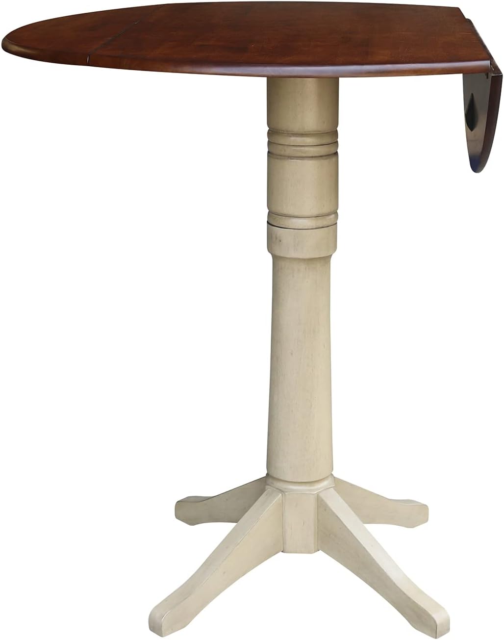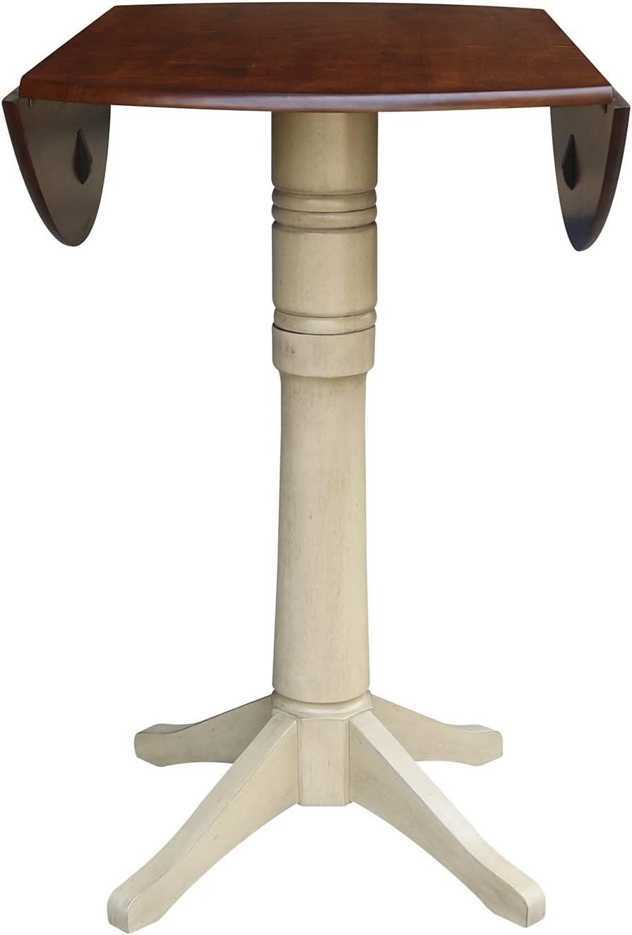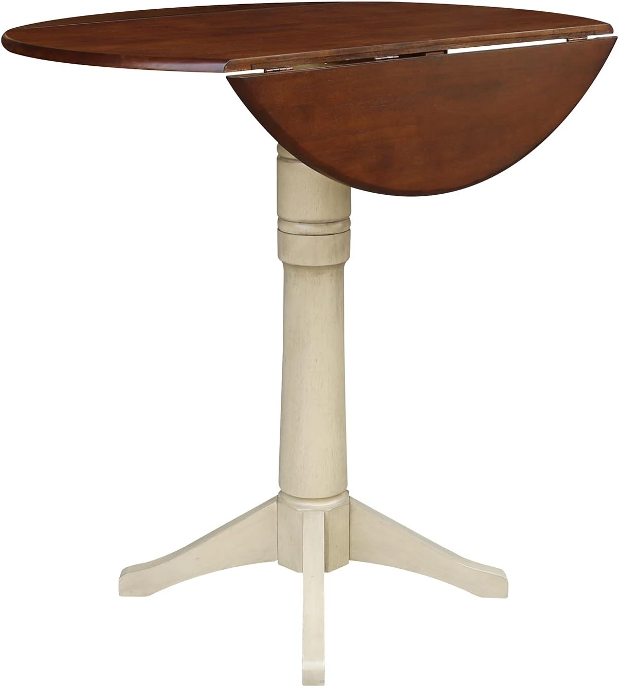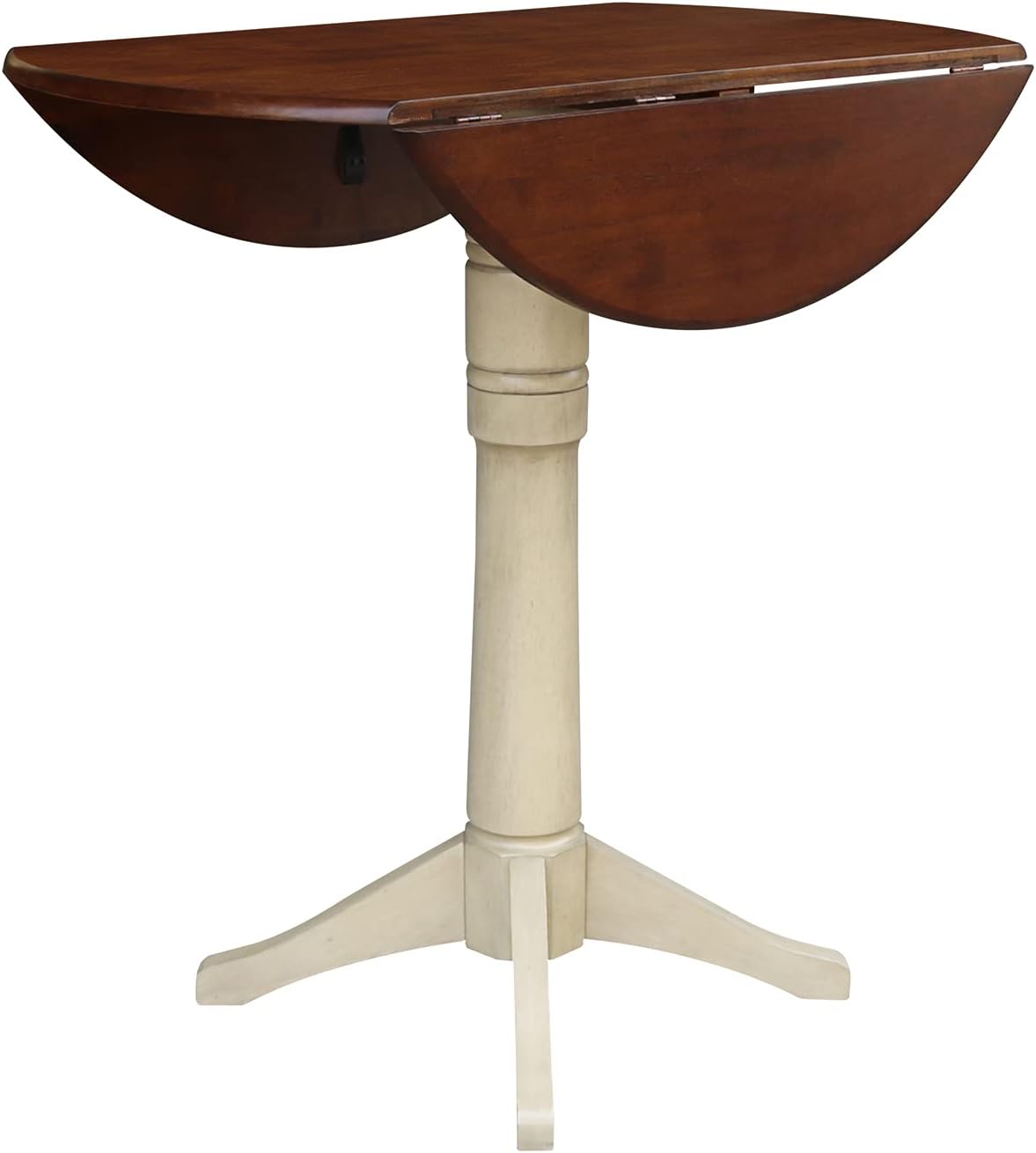 IC International Concepts International Concepts 42 in. Hardwood Dual Drop Leaf Pedestal Dining Table, Antiqued Almond/Espresso