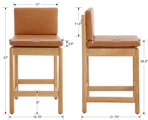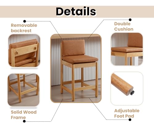 EALSON Counter Height Bar Stools Set of 2 Farmhouse Barstoos with Back Mid Century Modern Counter Stools with Natural Wood Legs Upholstered Linen Bar Charis for Kitchen Island/Pub, Beige