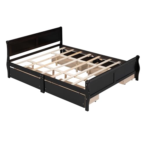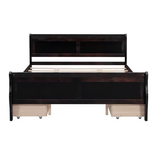 SOFTSEA Full Bed Frame with Center Legs, Solid Wood Platform Bed Frame with Headboard and Wooden Slats, No Box Spring Needed (Full, Espresso)