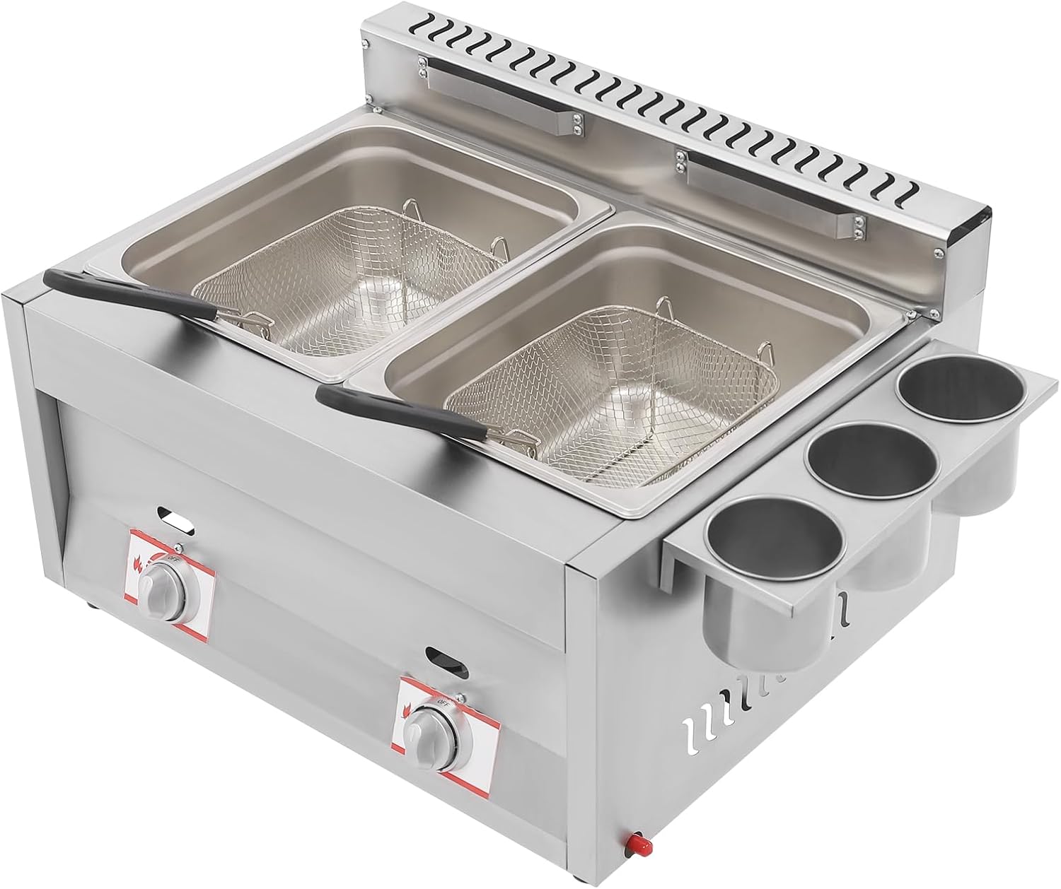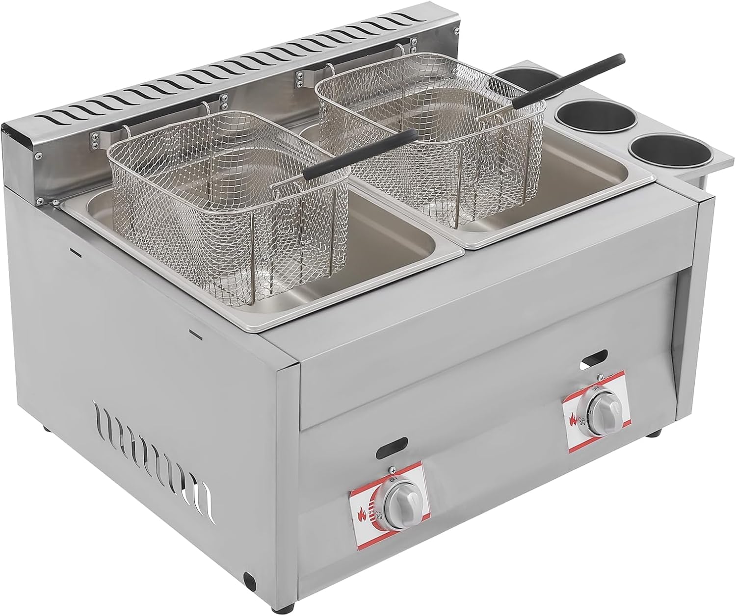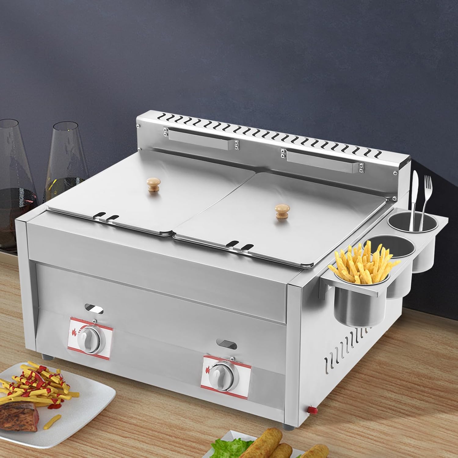 Commercial Gas Deep Fryer with Basket,2 * 10QT Dual Tank Large Capacity Stainless Steel Countertop Oil Fryer with Lids,for Restaurant and Home Use
