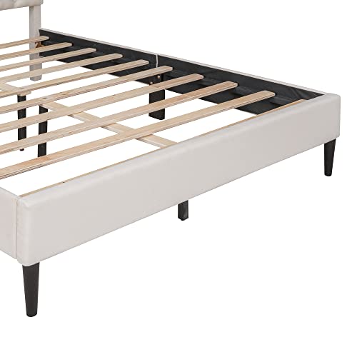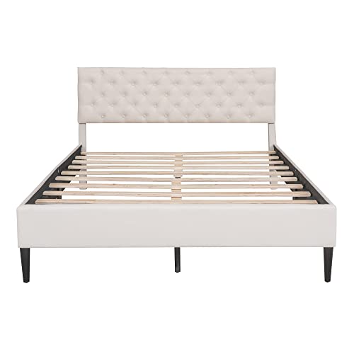 Modern Upholstered Linen Platform with Adjustable Headboard, Heavy Duty Button Tufted Frame Wood Slat Support for Girls Boys Teens, Easy Assembly, No Box Spring Needed (Gray, Twin)