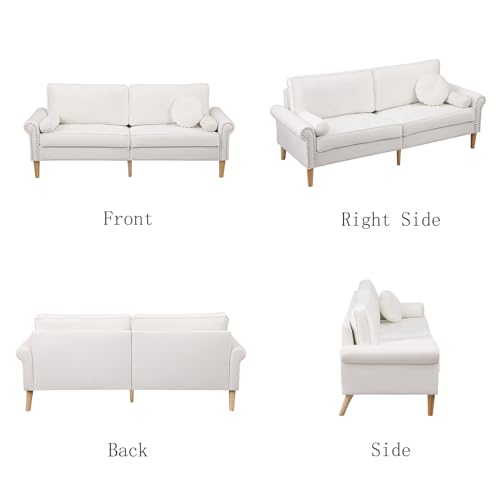 3 Seater Sofa,76 Inch Mid Century Modern Chesterfield sofa couch with wood Legs,Velvet Fabric Upholstered 3 seater couch sofa with thicken foam for Living Room Bedroom Apartment(White)