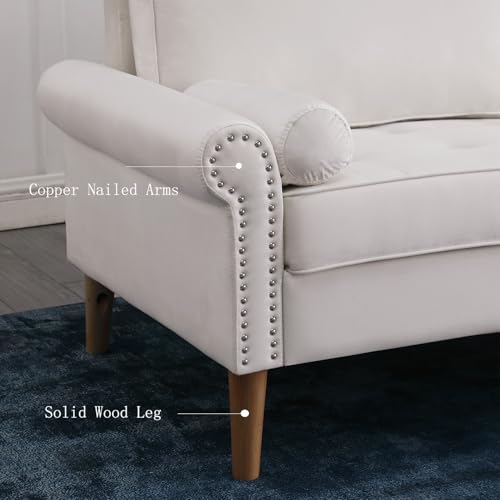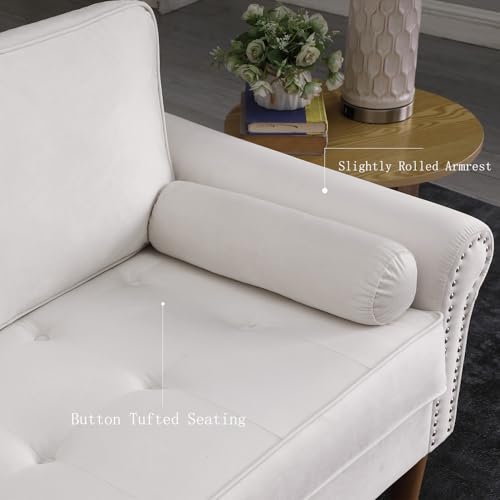77" Loveseat Sofa Couch, Modern Velvet Sofa Couch for Living Room, Wide 2-Seater Sofa with Button Tufted Seat, Copper Nailed Arms, Small Love Seat Sofa for Bedroom, Apartment, White