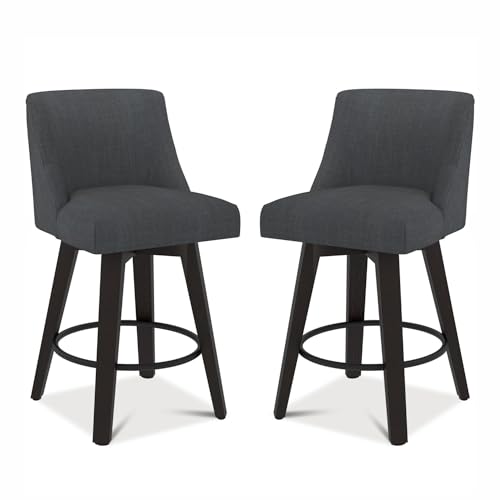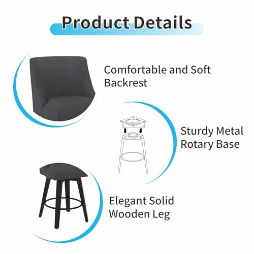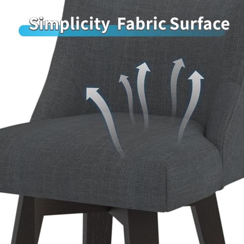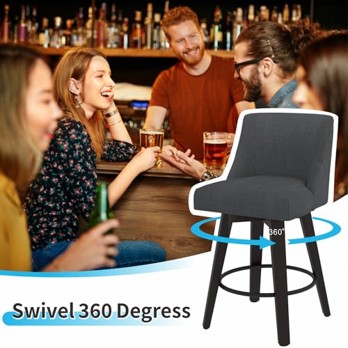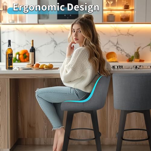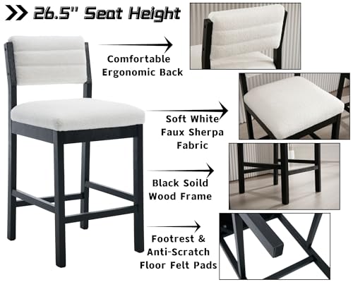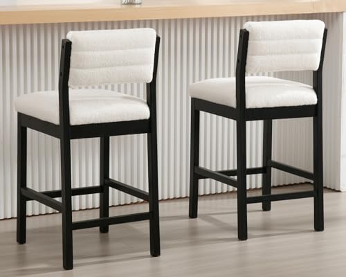 MUUEGM Counter Height Bar Stools Swivel with Back Set of 2, 26In Height Bar Stools with Solid Wood Stand, Fabric Upholstered Counter Height Bar Stool with Thicken Cushion Back, Ivory White