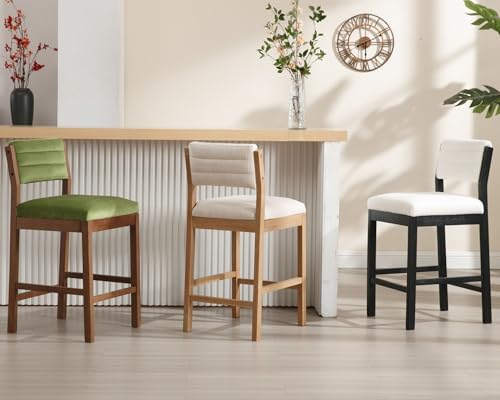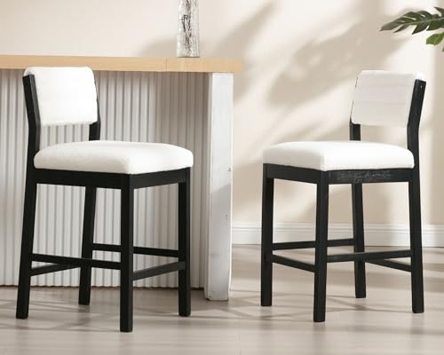 26.5'' Tall Bar Stools Set of 2 Modern Counter Stools with Backs Beige Linen Upholstered Bar Height Chairs Counter Height Island Stools with Wood Frame Farmhouse Wooden Barstools for Kitchen Island