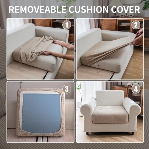 Couch Cushion Covers Waterproof,Magic Sofa Covers Washable Stretch Resistant for 3 Chair Cushion Couch Furniture Protector for Pets Sectional Slipcovers(Armrest Sofo Cover,Ivory)