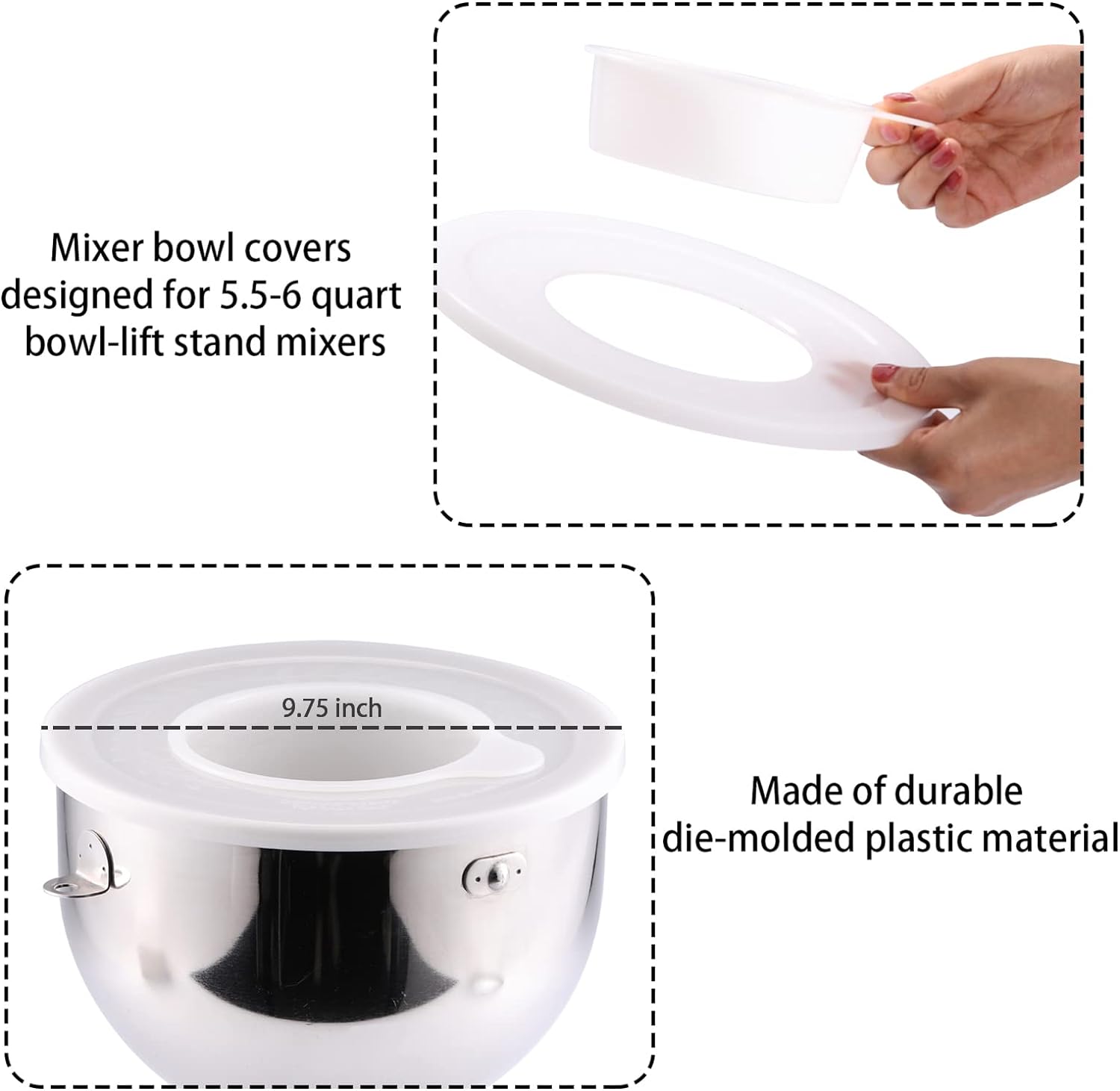 Mixer Bowl Lid Covers for KitchenAid 5.5-6 Quart Bowls - Stand Mixer Bowl Covers to Prevent Ingredients from Spilling, Fits Bowl-Lift Models KV25G and KP26M1X (2 Pack)