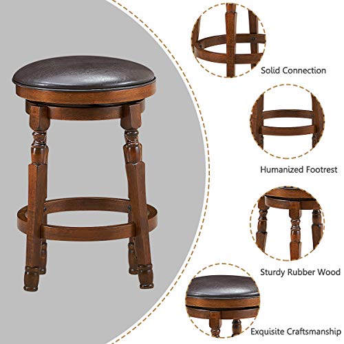 COSTWAY Backless Bar Stools Set of 4, 24-Inch Counter Height Round Stool with 360° Swivel Cushioned Seat, Soft PU Leather Barstool with Sturdy Natural Rubber Wood, Easy Assemble for Home Pub Cafe