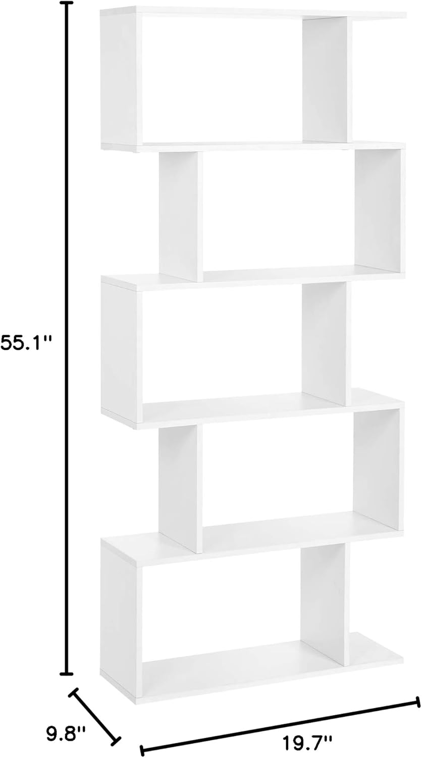 VASAGLE Bookcase, Tree-Shaped Bookshelf with 8 Storage Shelves, Rounded Corners, White 9.8D x 19.7W x 55.1H in & Wooden Bookcase, Display Shelf and Room Divider, 5-Tier Bookshelf, White