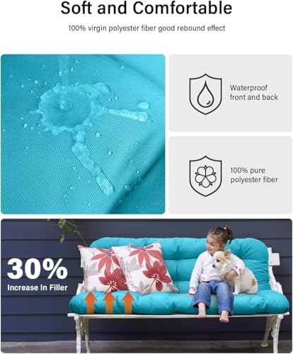 YEFU Porch Swing Cushion, Swing Cushions 2-3 Seater Replacement with Backrest, Waterproof Bench Cushion for Patio Garden, 48x40x5 Inch, Light Brown