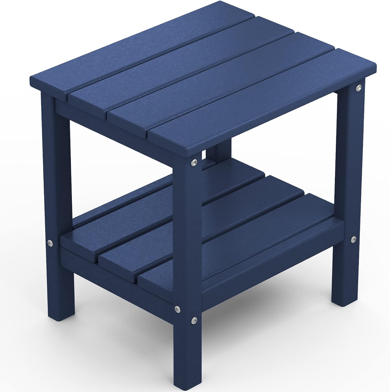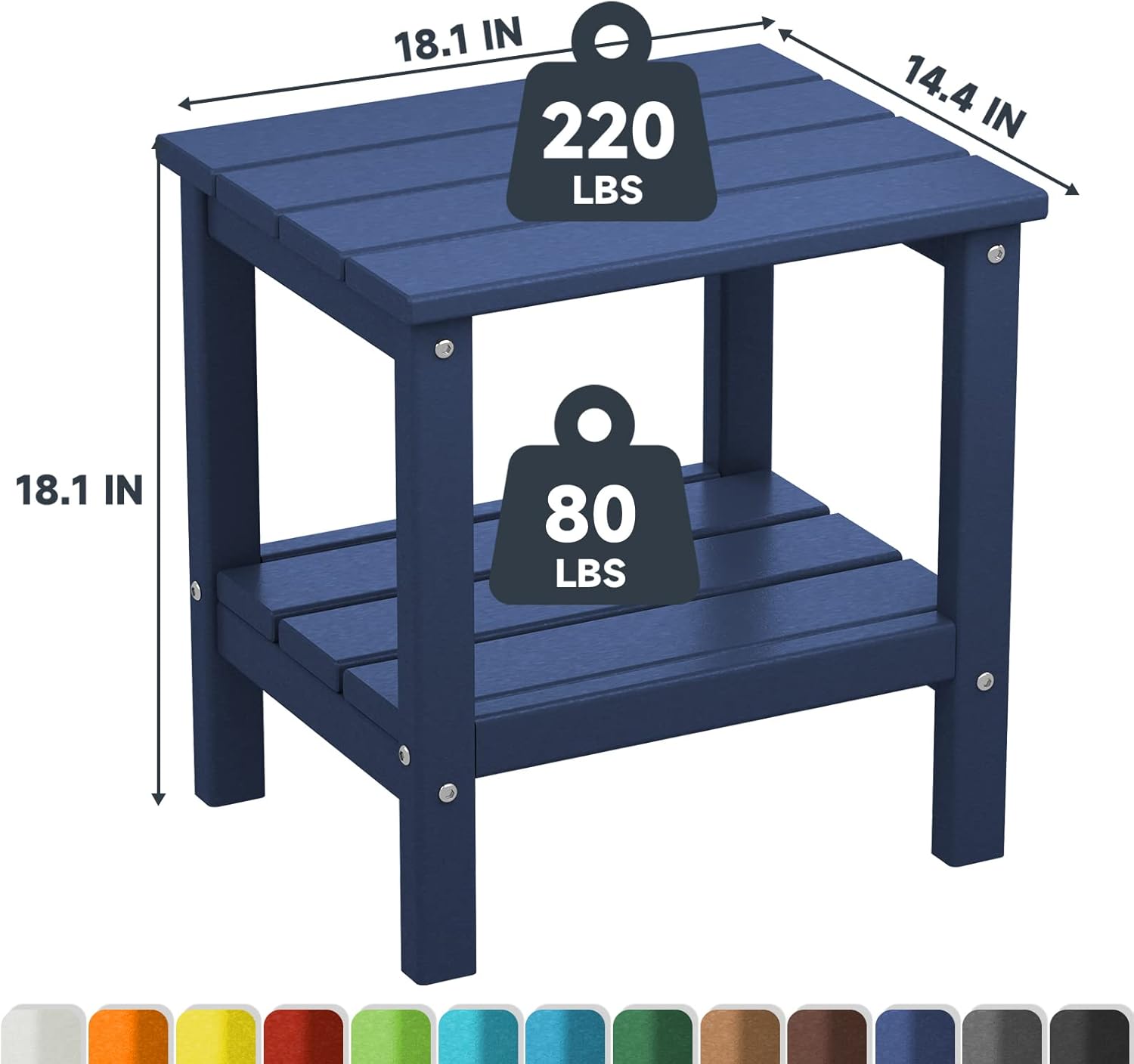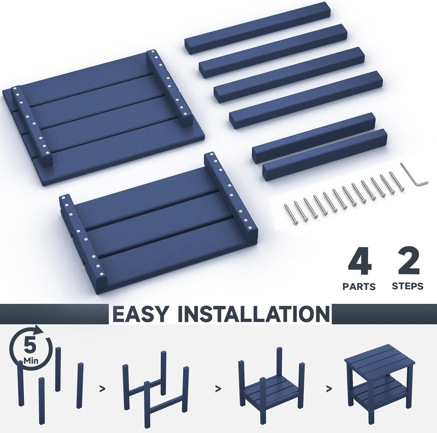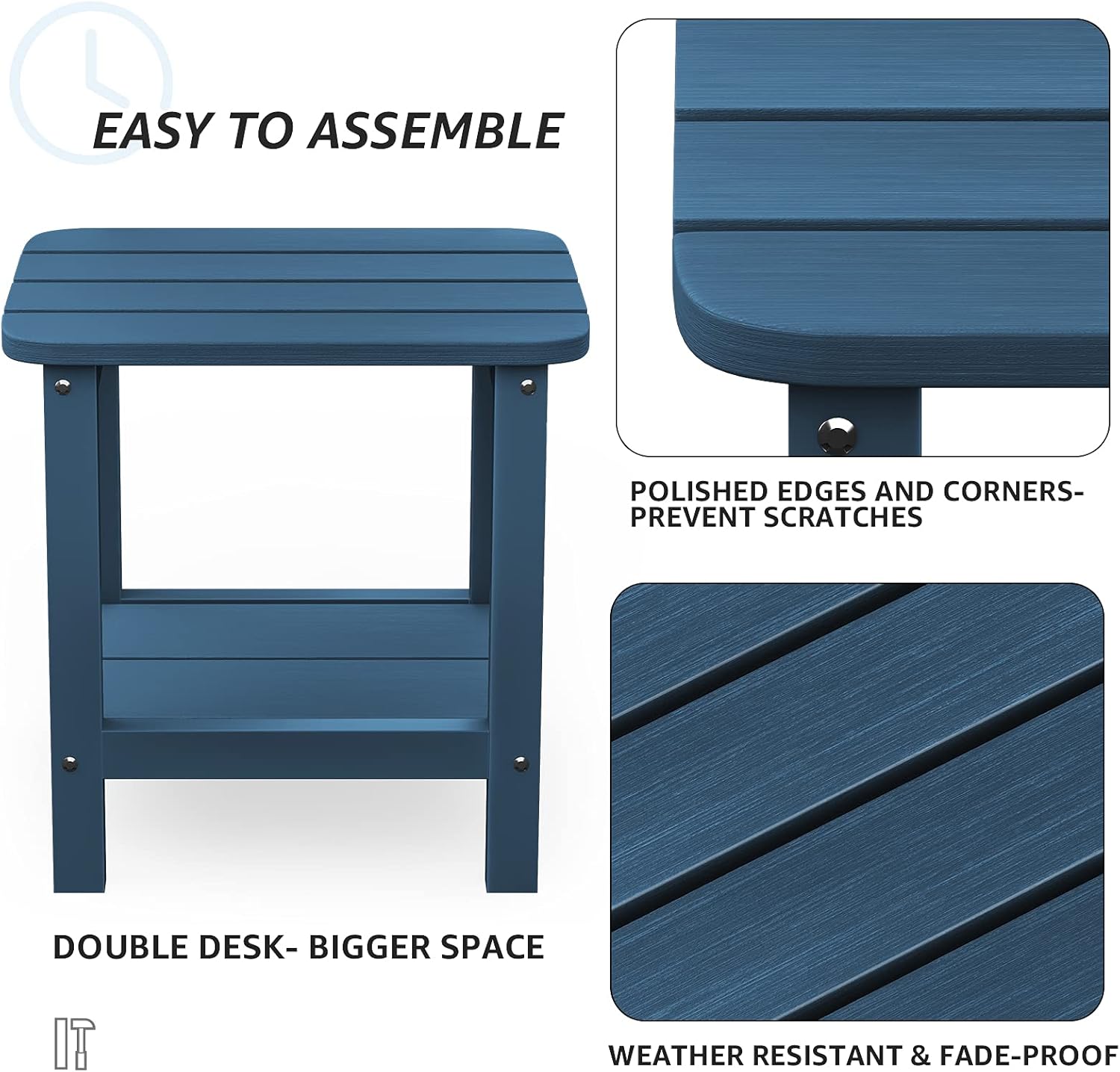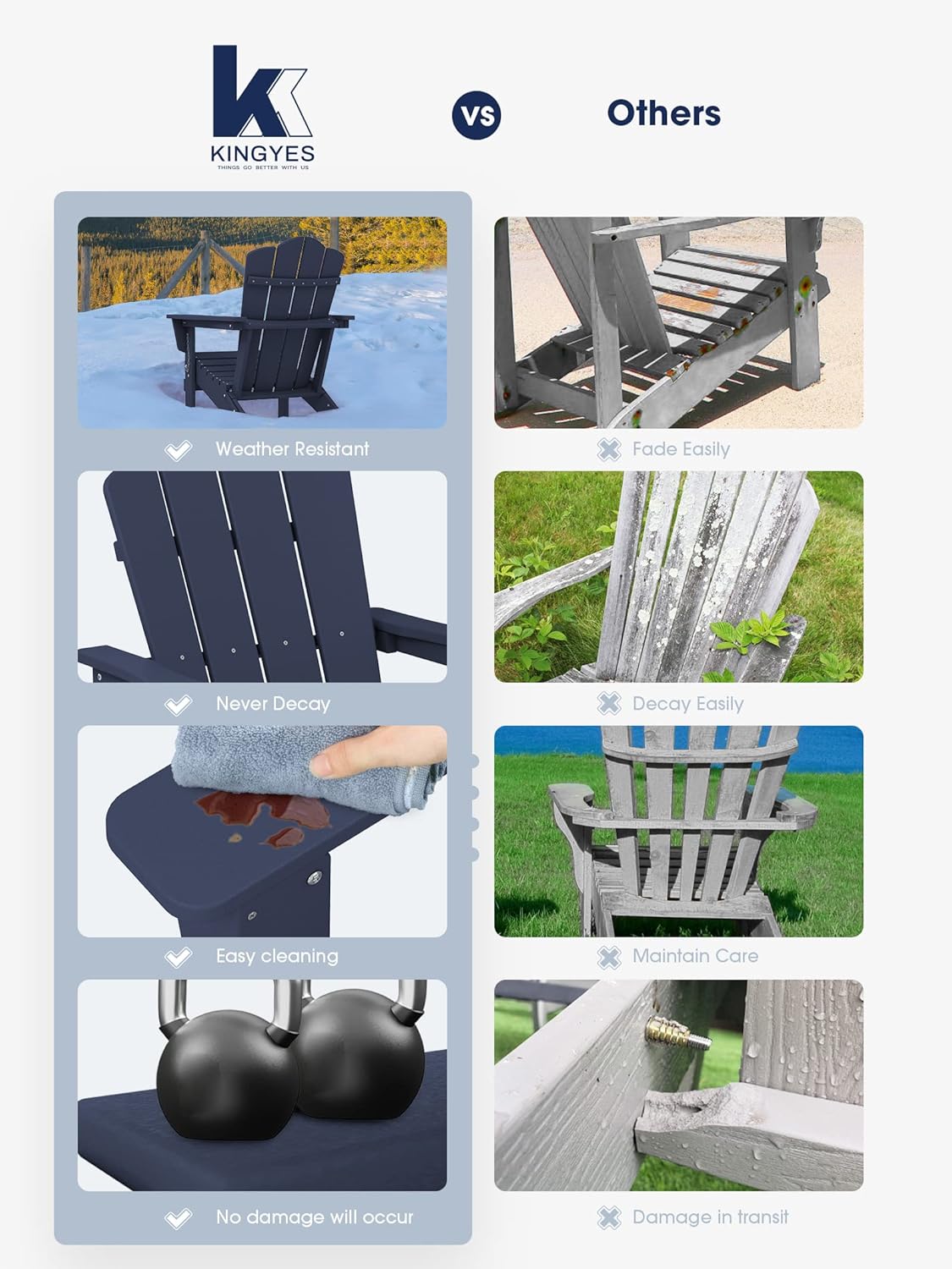 KINGYES Folding Adirondack Chair with Double Layer Side Table 3-Piece Adirondack Chair Set (Including 2 Folding Chairs-Navy and 1 Side Table-Navy)