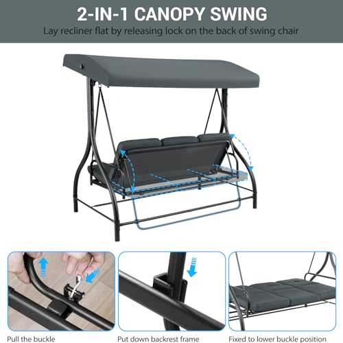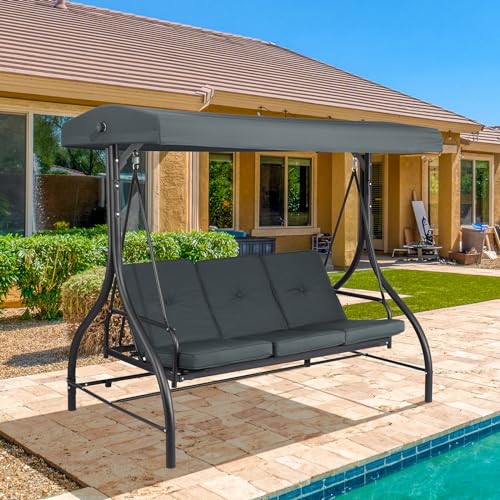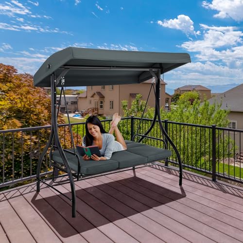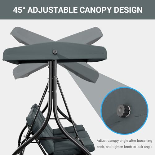MAMIZO Outdoor 3-Seat Patio Swing, Porch Swings, Backrest Bench Swing Sets, Glider Swing Bed Chair, w/Adjustable Canopy, Thickened Removable Cushions, for Outside Backyard, Garden (Navy Blue)