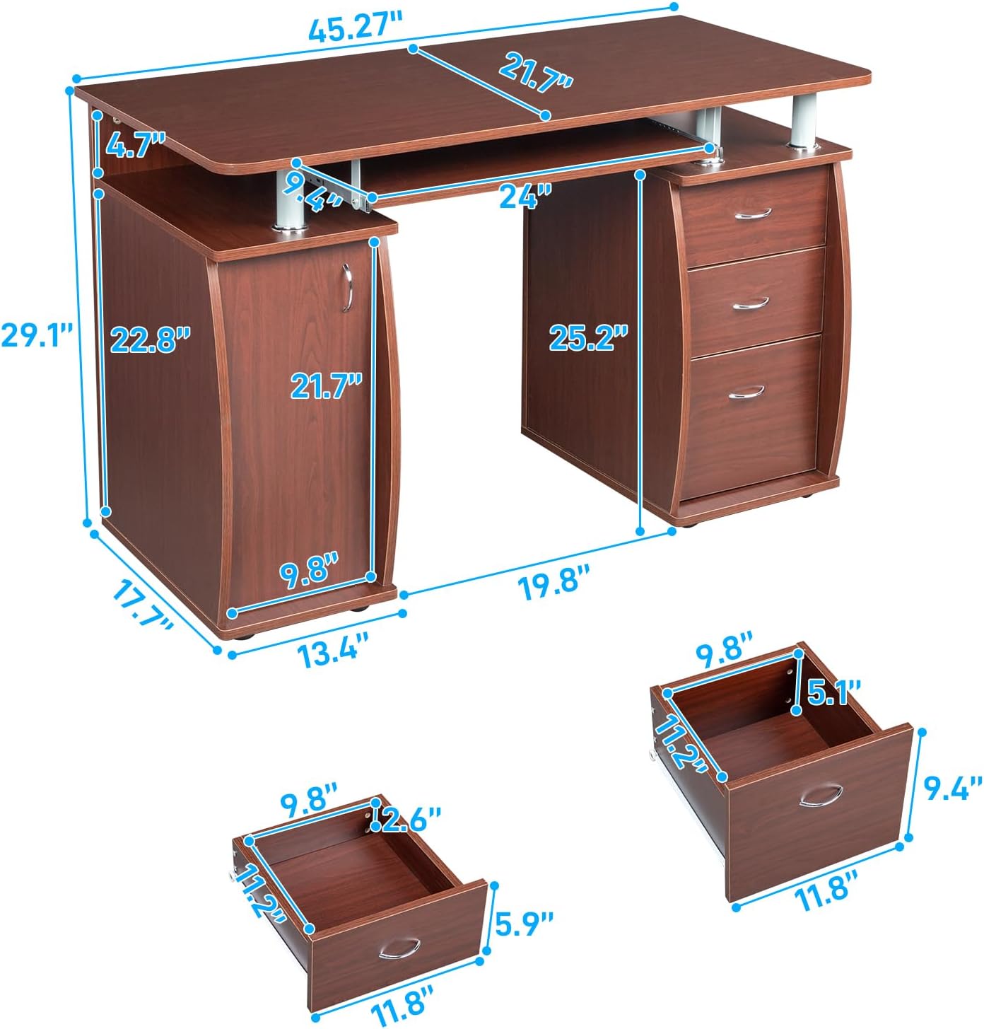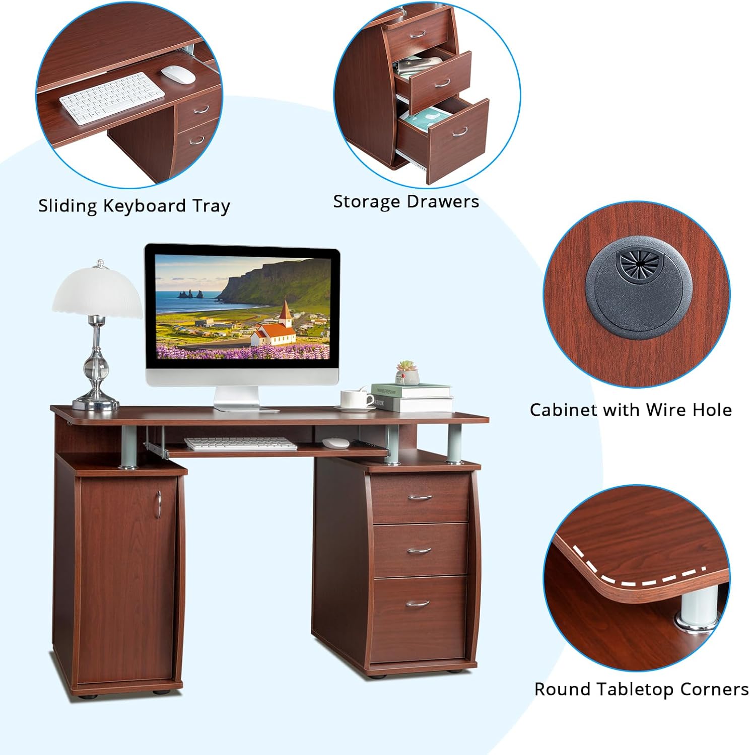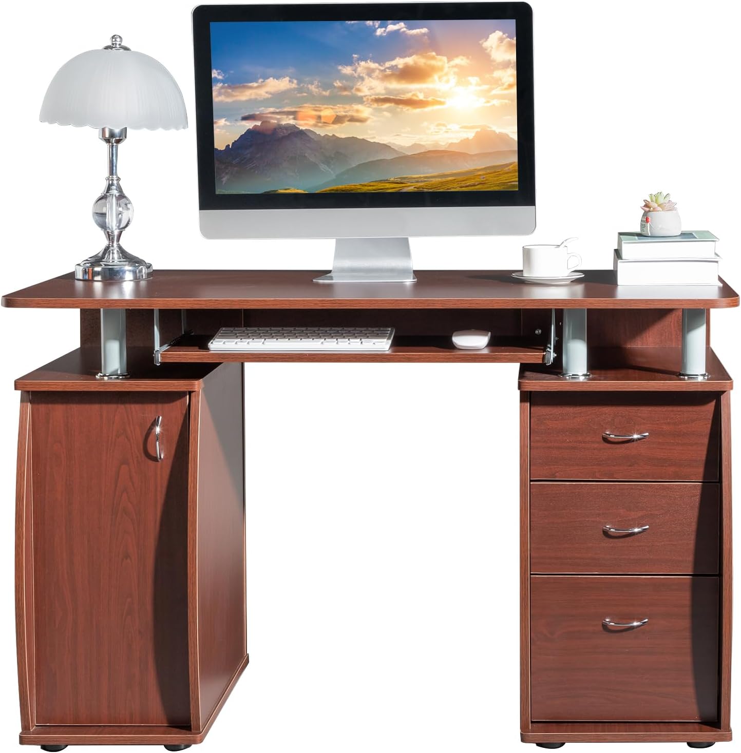 Home Office Computer Desk - Wood Computer Workstation with 1pc Door, 3pcs Drawers and Keyboard Tray,Computer Desk with Drawers & Storage Cabinet, Office Desk PC Laptop Workstation for Home, Studio