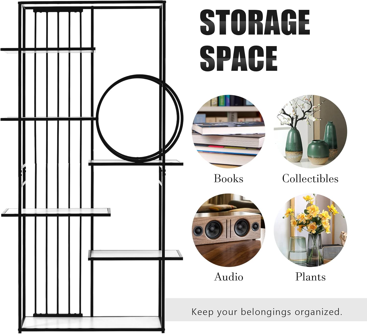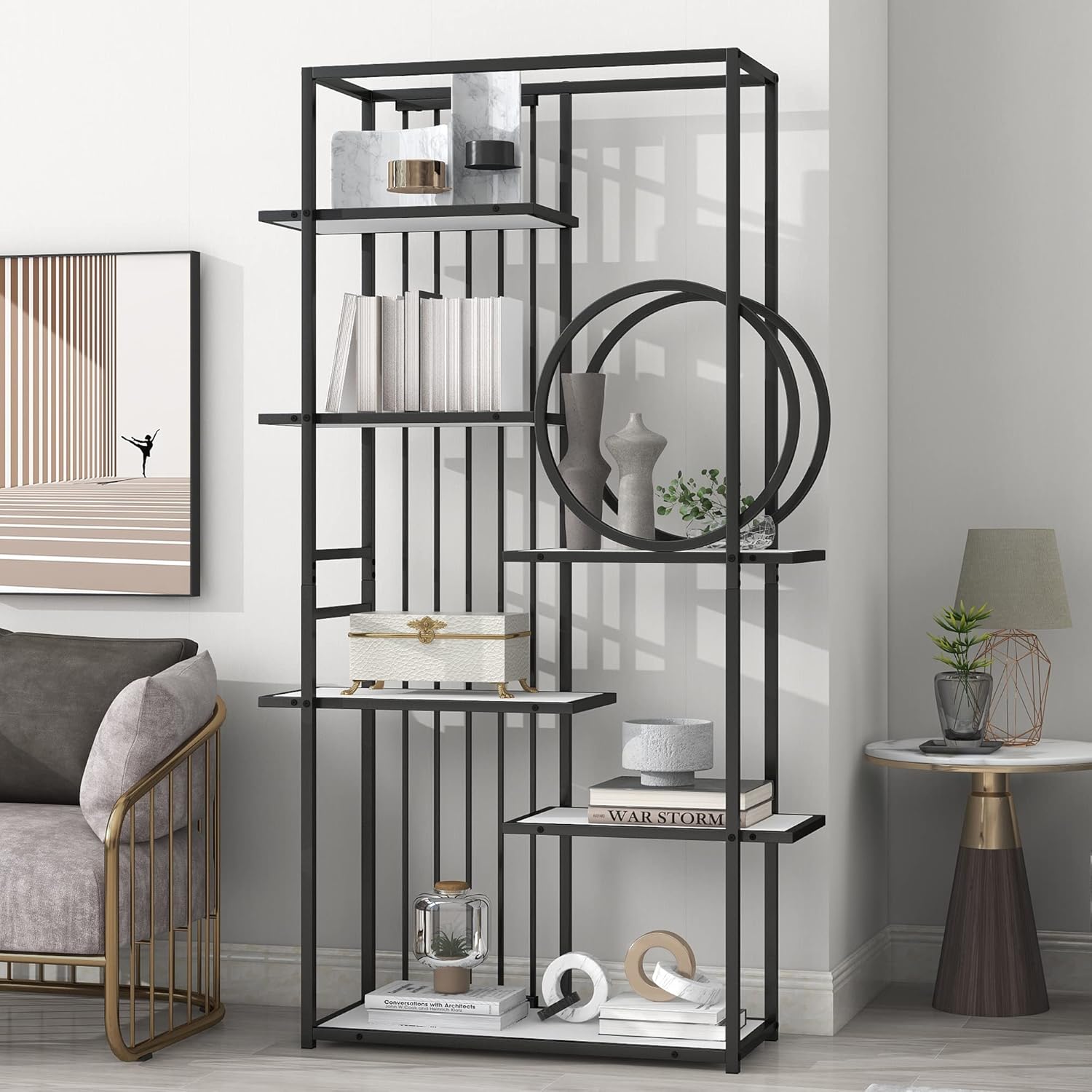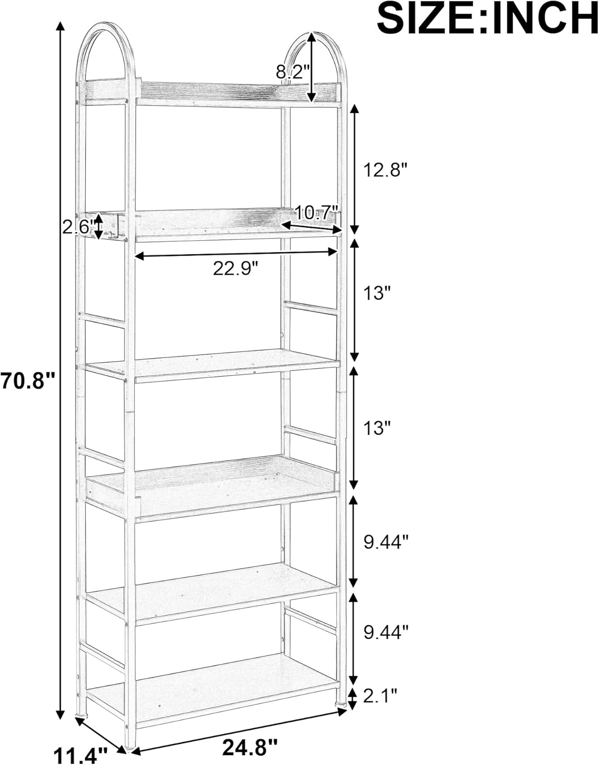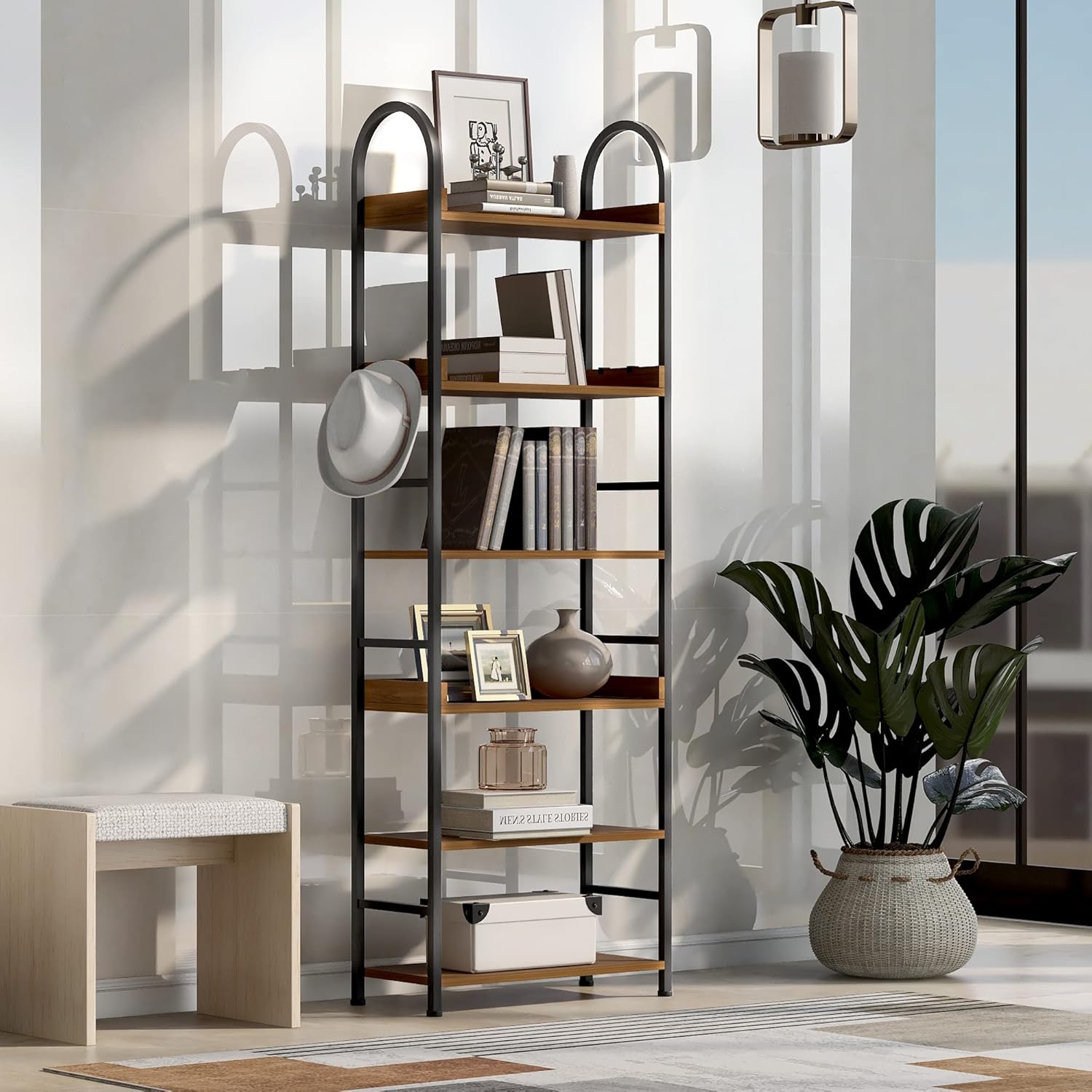 Merax 6 -Tier Tall Bookshelf Bookcase, Open Industrial Open Storage and Display Shelves with Hooks