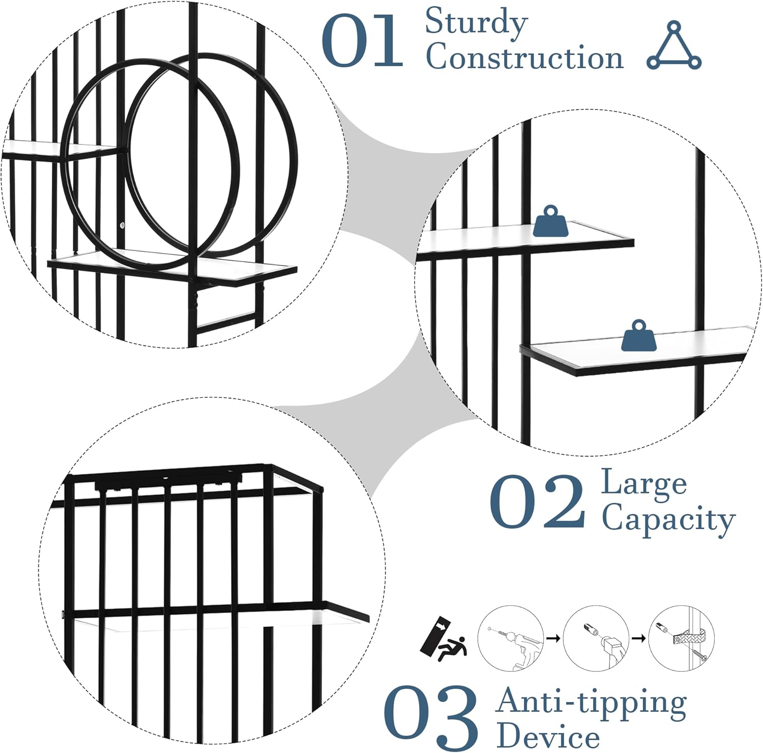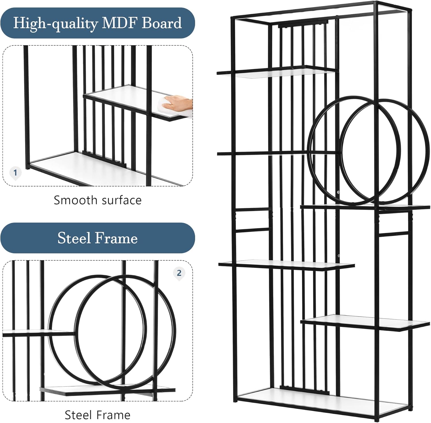 6-Tier Bookcase White Bookshelf, Modern Storage Display Shelf Rack, Metal Frame