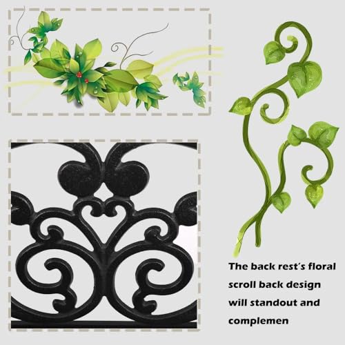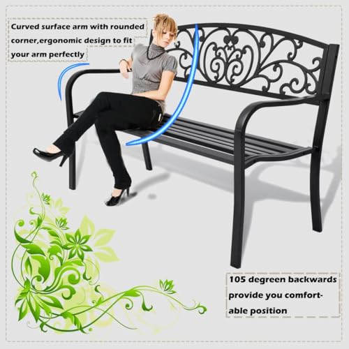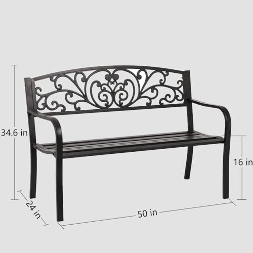 50-Inch Metal Garden Bench with Floral Pattern Backrest and Outdoor Furniture for Patio, Porch, Yard - Waterproof and Durable