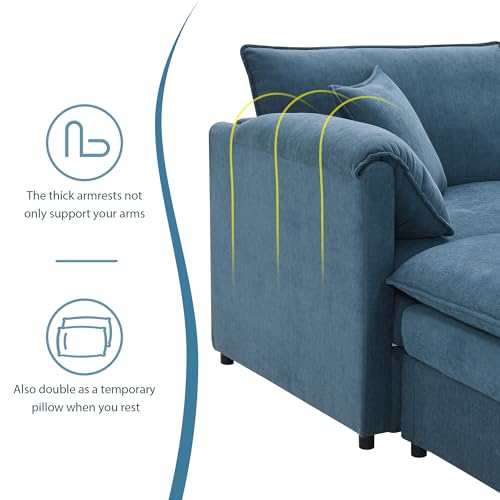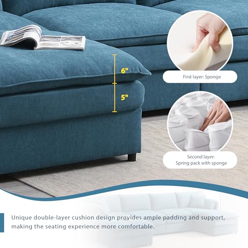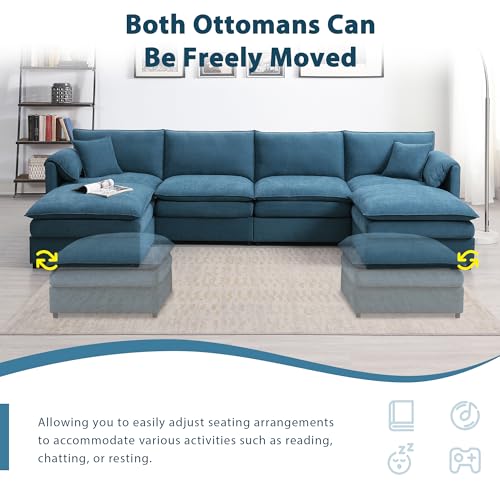 Merax Blue Modern U-Shaped Cloud Couch Set with Double Cushions, Chenille Modular 6-Seat Sectional Sofa Sleeper Bed with Ottomans, 13466"