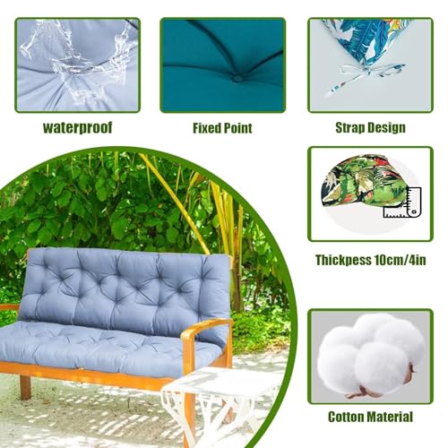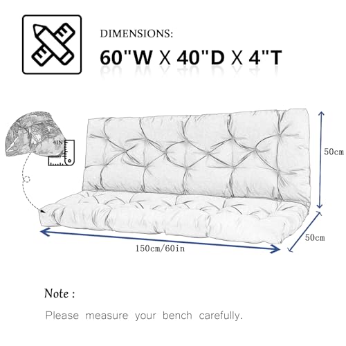 Waterproof Swing Replacement Cushions 3 Seater 60"x40", Outdoor/Indoor Bench Cushion with Backrest for Patio Furniture Garden