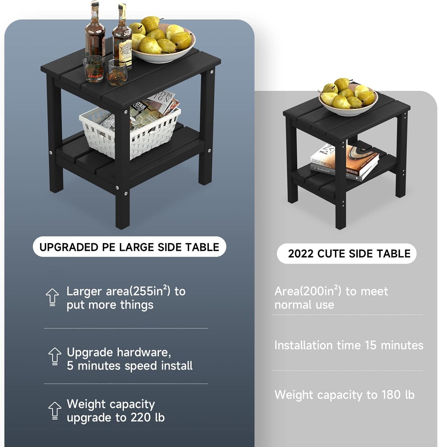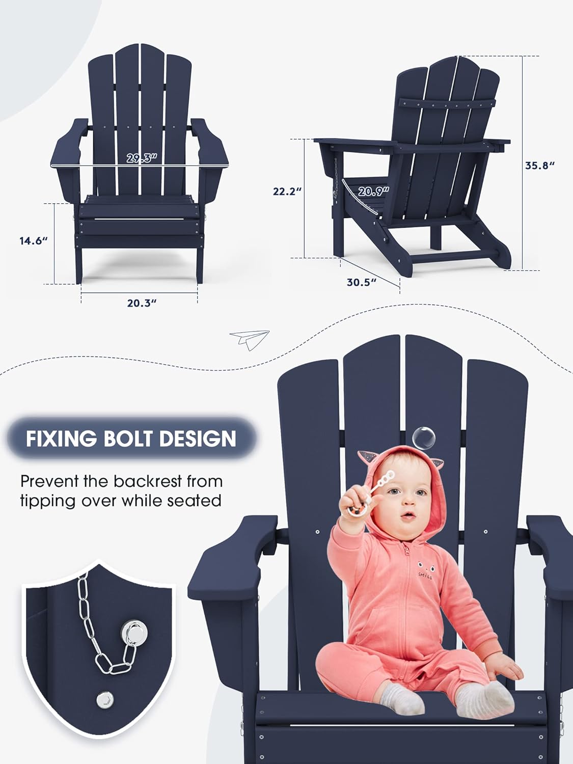 KINGYES Folding Adirondack Chair with Double Layer Side Table 3-Piece Adirondack Chair Set (Including 2 Folding Chairs and 1 Side Table)