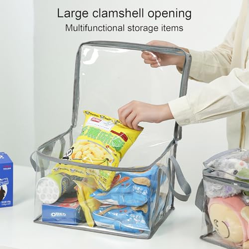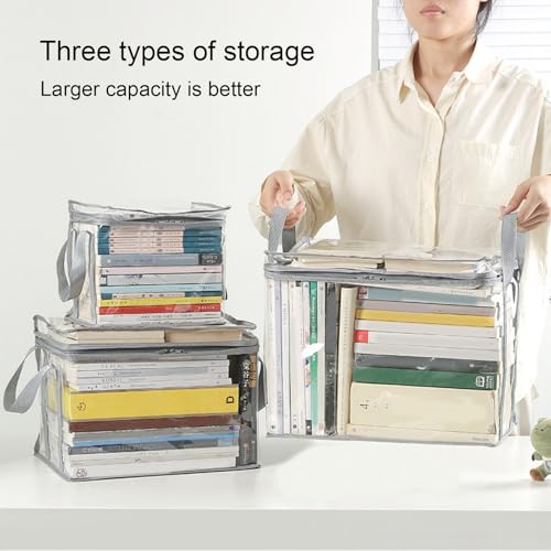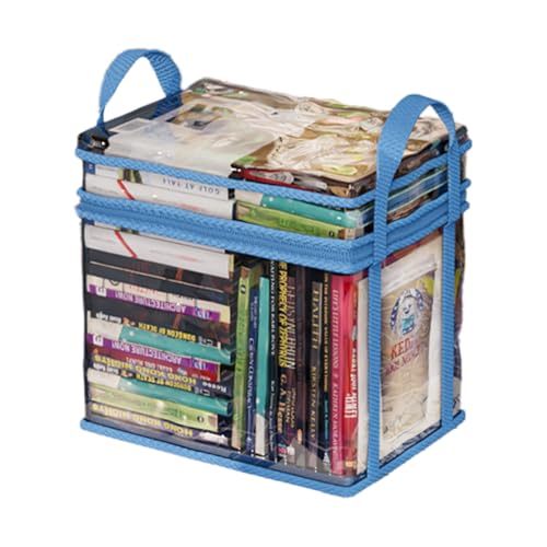 Student Book Storage Bag Water-Proof, Transparent Storage Box Foldable Handheld, Books School Supplies Organising Box Large Capacity for Home, Office and Travelling