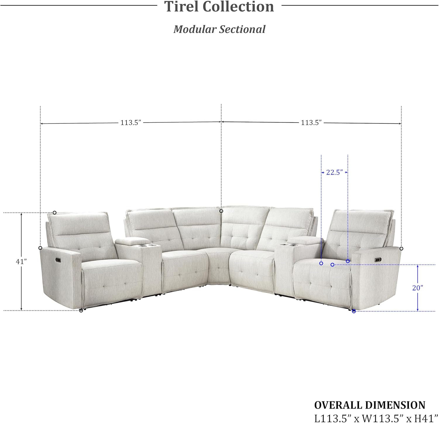 Lexicon Tirel 7-Piece Modular Power Reclining Sectional, White