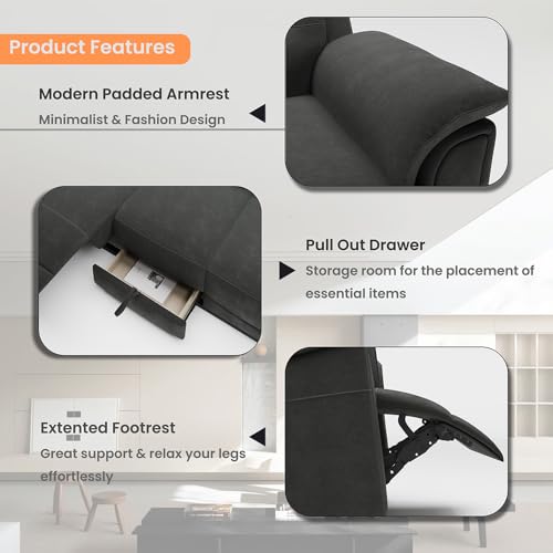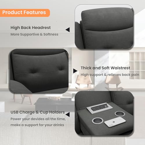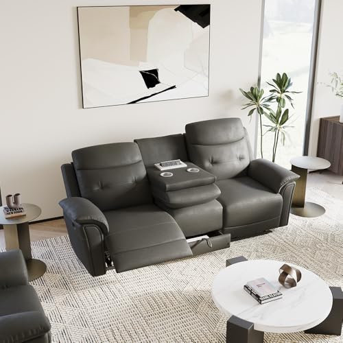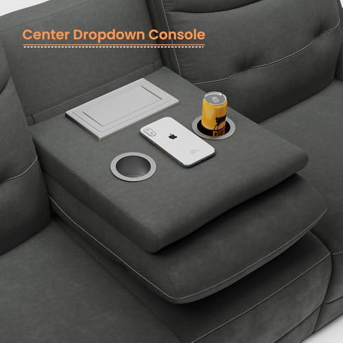 84.05''Power Reclining Sofa Sleeper Sofa Recliner, Oversized Reclining Sectional Sofa with Dropdown Console, Pull Out Drawer, USB Charging Port, Dark Brown