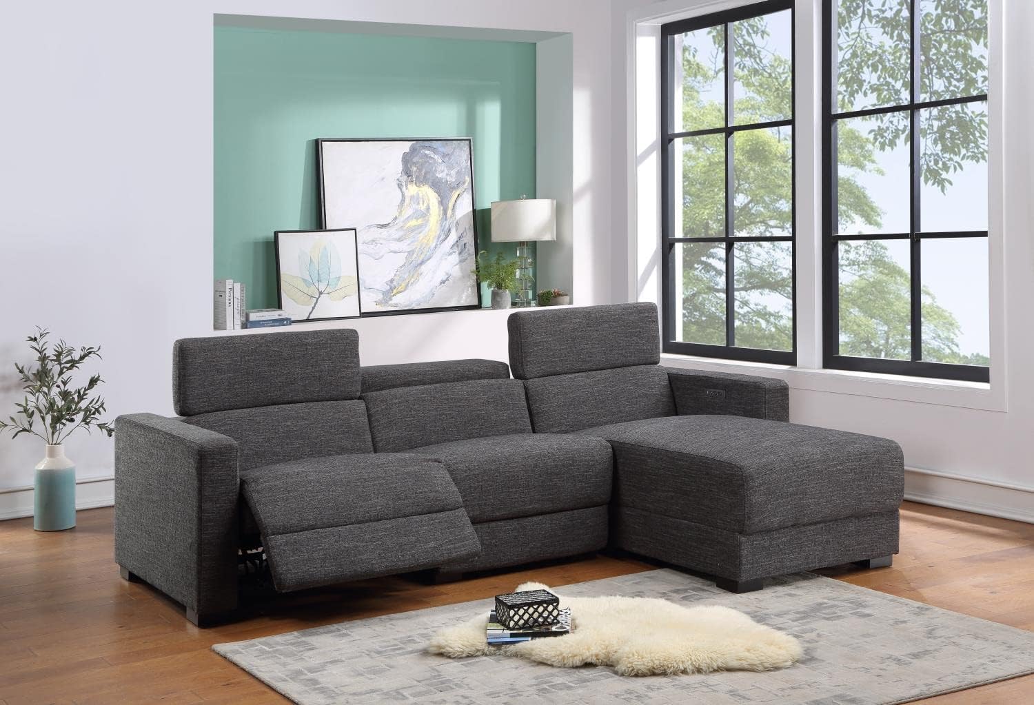 Steve Silver Zara Dark Gray Polyester Fabric Power Reclining Sectional