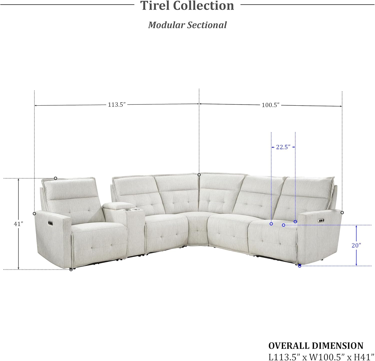 Lexicon Tirel 6-Piece Modular Power Reclining Sectional, White