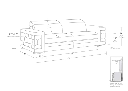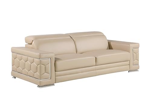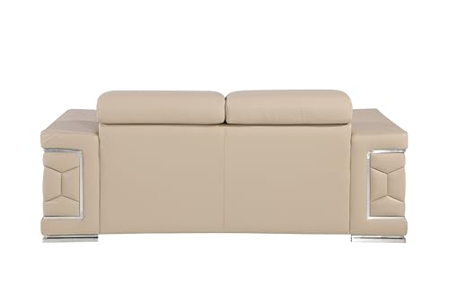 Soren 2 Piece Leather Upholstered Adjustable Headrests, Solid Brazilian Wood Frame and High Density Foam Cushioning, Sofa and Loveseat, White