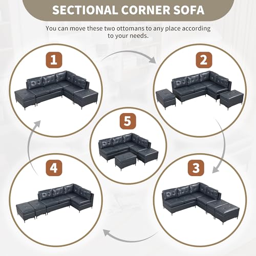 Modway Commix Modular Sofa, U Shaped Reclining Sectional, Black Fabric