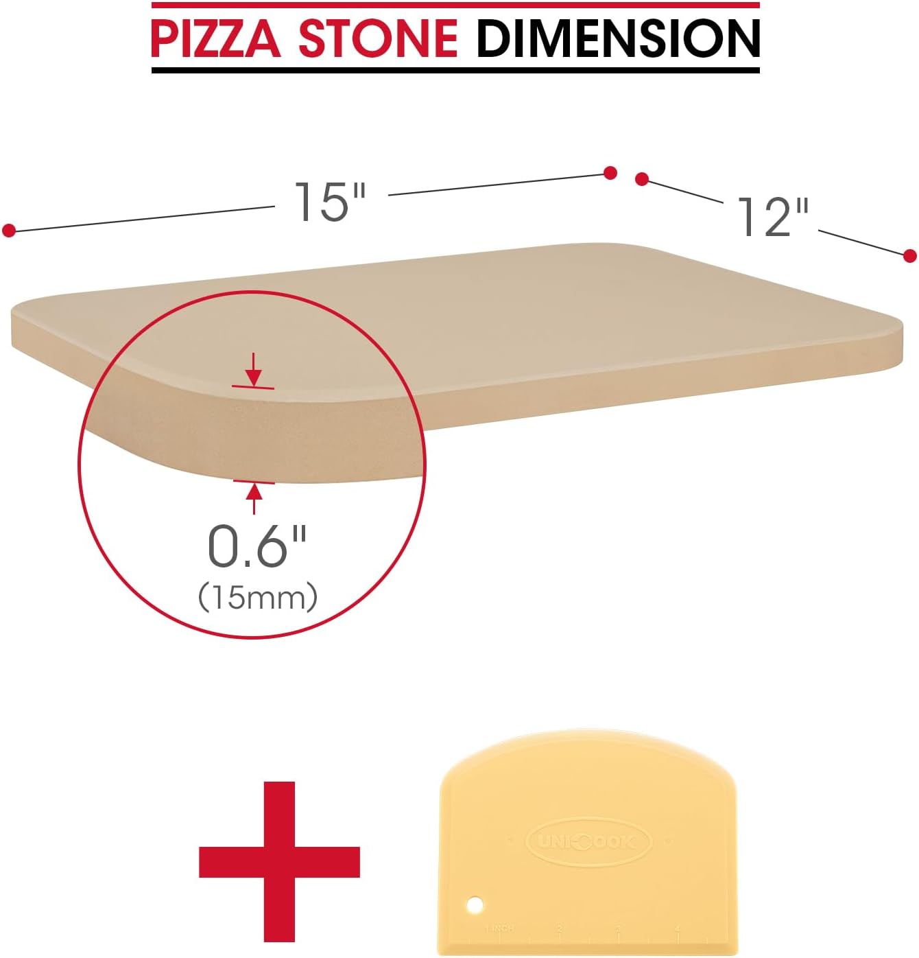 Unicook Pizza Stone for Oven and Grill, 15 Inch Large Baking Stone, Heavy Duty Cordierite Bread Pizza Pan, Thermal Shock Resistant Cooking Stone for Pizza, Bread, Cookie and More
