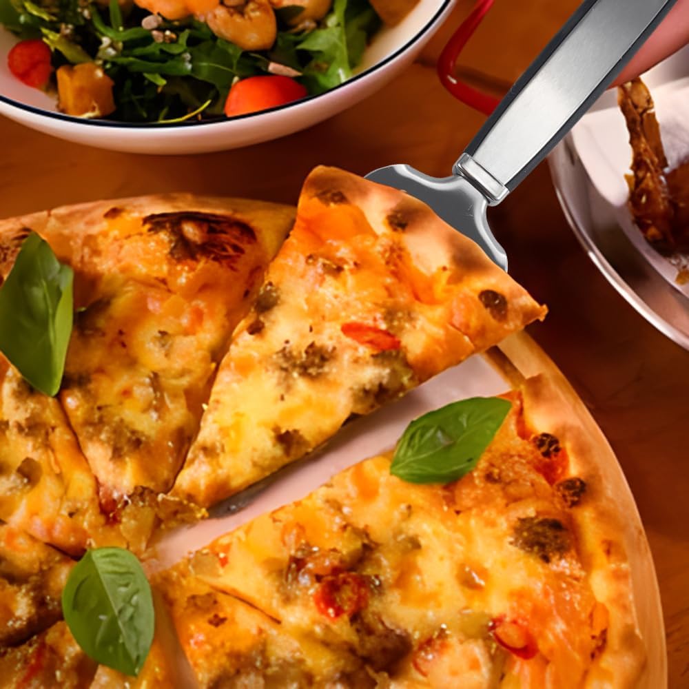Delux Pizza Stone Set with Pizza Cutter Pizza Server, 13inch Ceramic Baking Stone for Oven and Grill with Metal Handle Rack,Quick Baked n Serving Pizza in Home n Outdoor