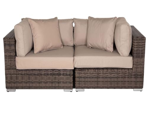 SUSIE'S GARDEN Patio Furniture Set 6 Piece Wicker Outdoor Furniture Sectional 6 Inch Thick Cushion Outdoor Couch Deep Seating w/Free Raincovers,Pillows for Porch, Balcony, Brown & Beige