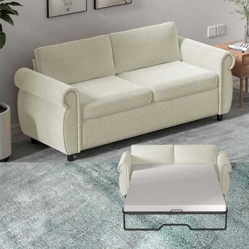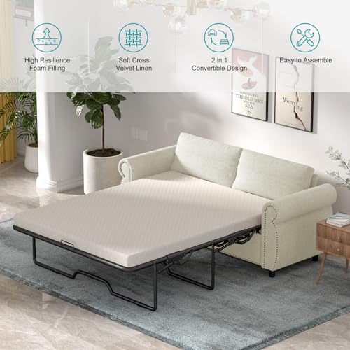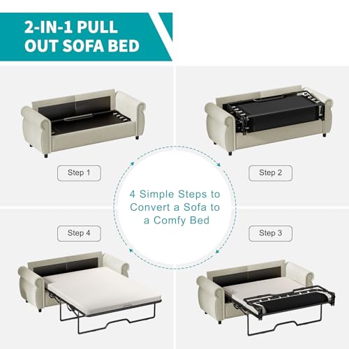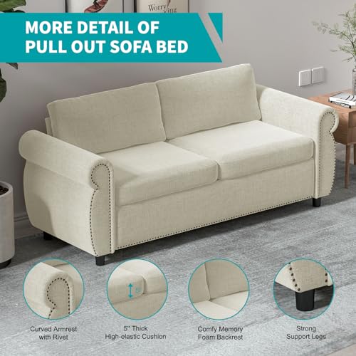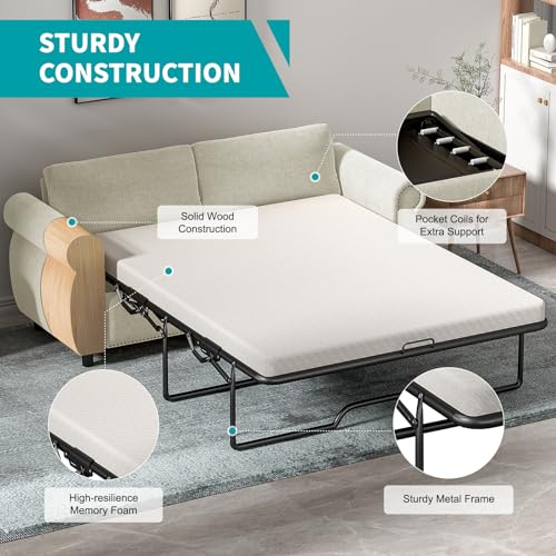 BALUS 2-in-1 Pull Out Sofa Bed, Convertible Sleeper Sofa Couch with Memory Sponge Mattress, Covers Removable and Washable, Pullout Couch for Living Room Home Office, Full Size, Dark Grey