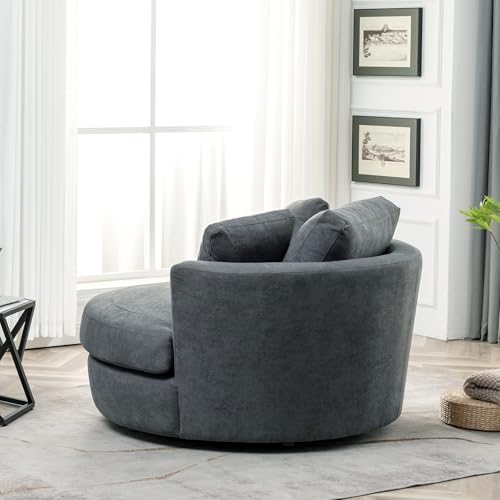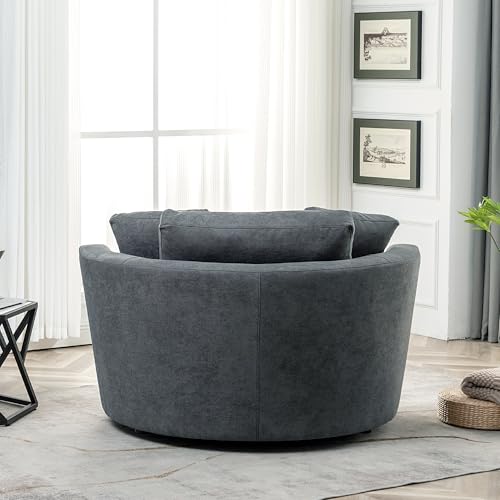 54" W Oversized Swivel Barrel Chair Armchair, Modern Accent Round Chair and a Half with 3 Toss Pillows, No Assembly Sofa Chair for Living Room,Light Brown