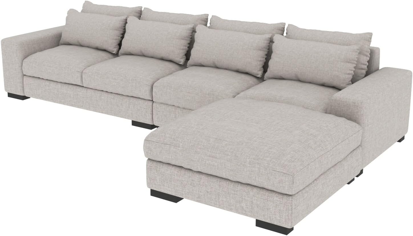 Overstock Modern Sectional Sofa with Feather and Down Light Grey Soft