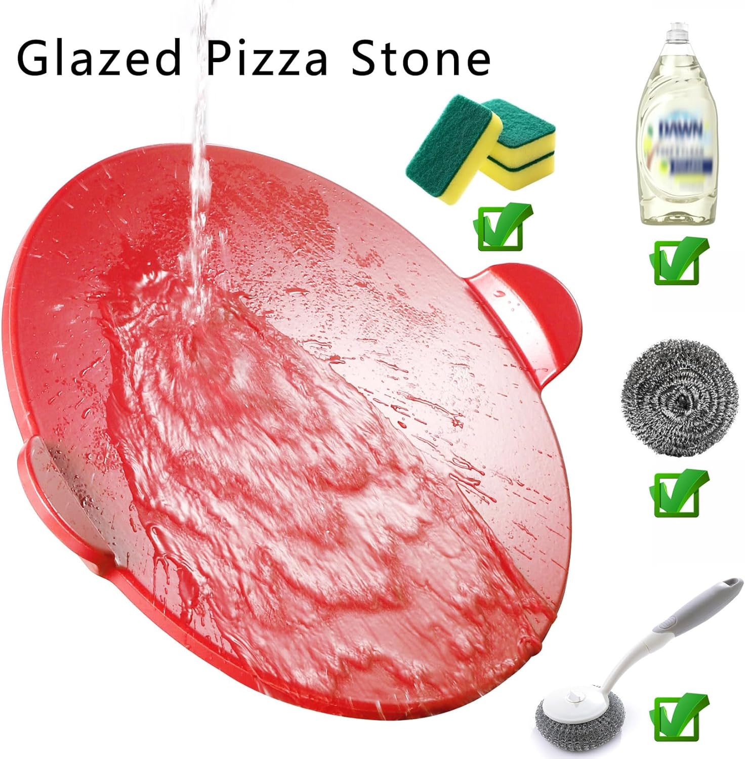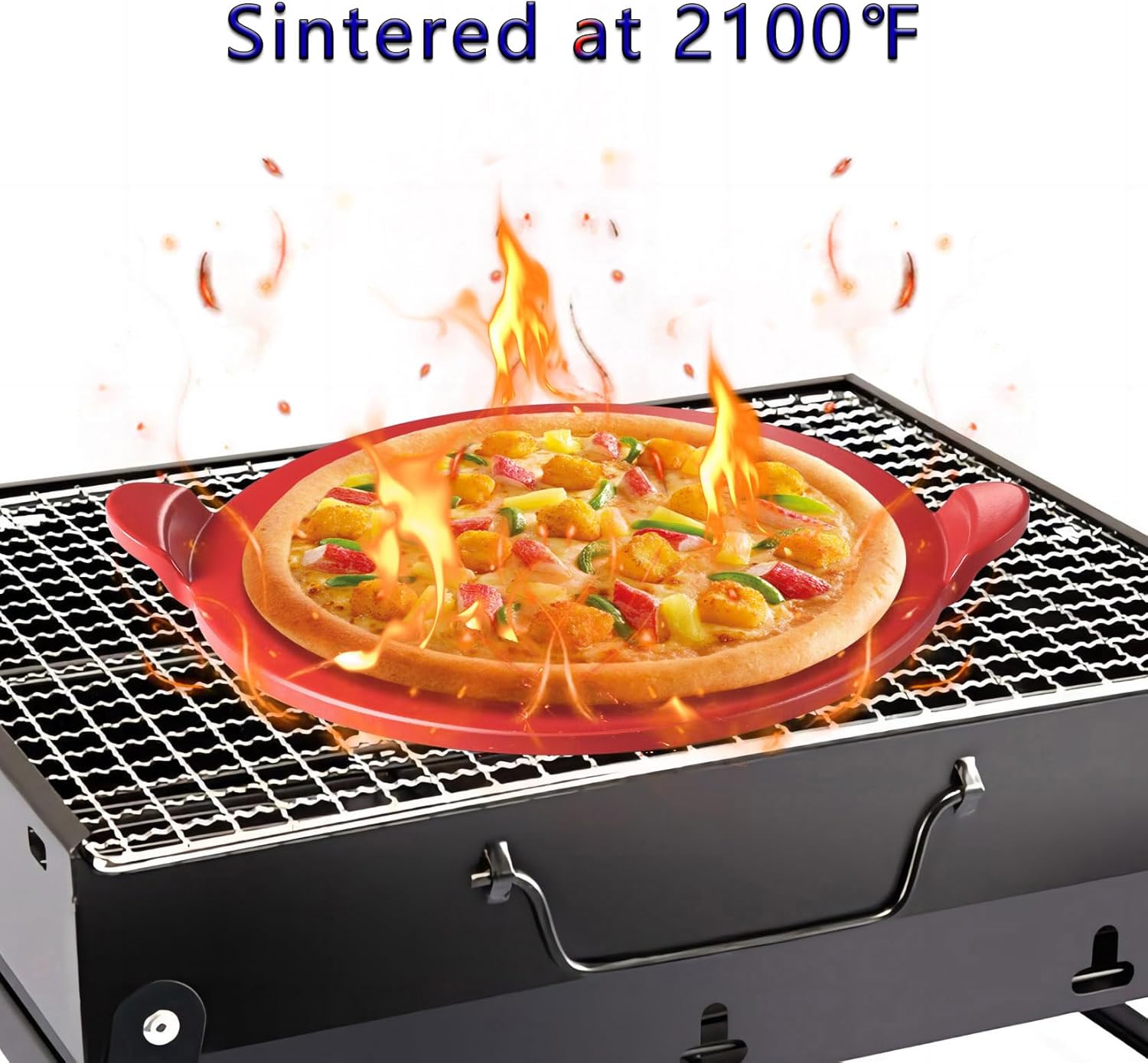 Pizza Stone for Oven Grill & BBQ Grilling, Pizza Pan Baking Stone Large Pizza Grilling Stones for Oven, Non-stick Ceramic Easy to Clean - 13 inch Round Cooking Stone Red