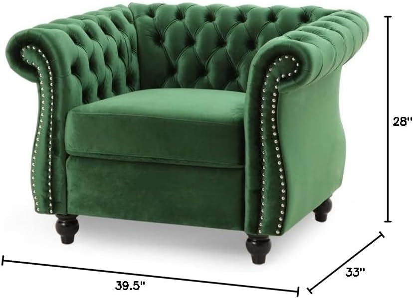 Great Deal Furniture Leila Chesterfield Velvet Club Chair, Emerald, 33D x 39.5W x 28H in