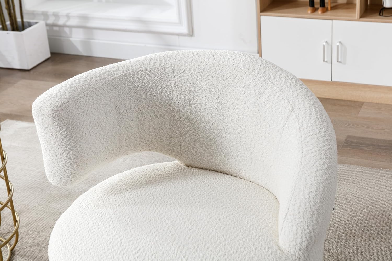 Donext 360 Degree Swivel Cuddle Barrel Accent Chairs, Round Armchairs with Wide Upholstered, Fluffy Fabric Chair for Living Room, Bedroom, Office, Waiting Rooms Beige Right