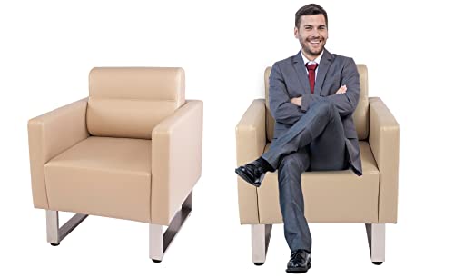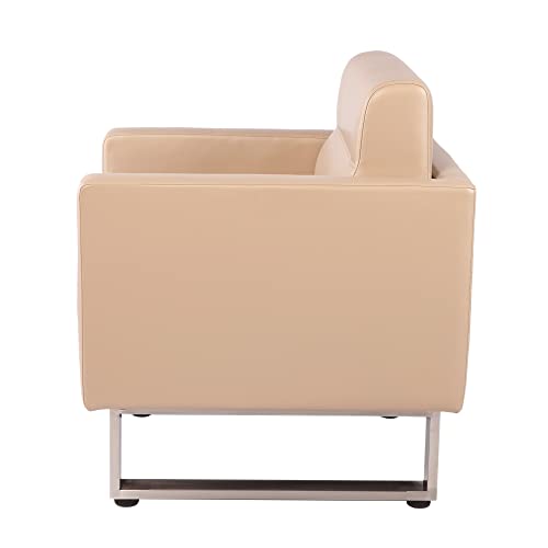 Accent Chair Arm Chair Lounge Sofa Upholstered Faux Leather Club Chair Ergonomic Lumbar Support Comfy Cubic Waiting Room Side Chair Modern Mid Century for Living Room Bedroom Salon Mall Brush Nickel