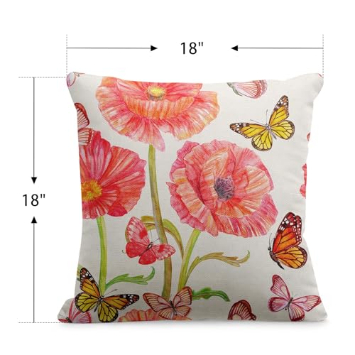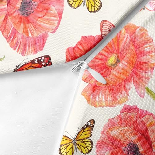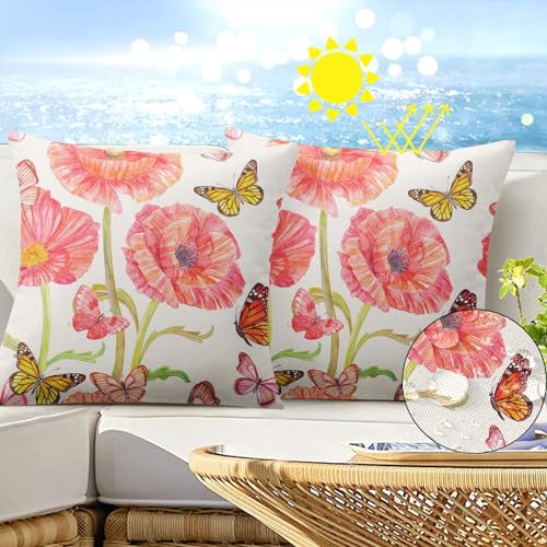 Flower Summer Outdoor Waterproof Throw Pillow Covers 18 x 18 Inch Set of 2, Floral Pink Pillowcase Square Cushion Case, Farmhouse Garden Decorative Pillows for Couch Beach Patio