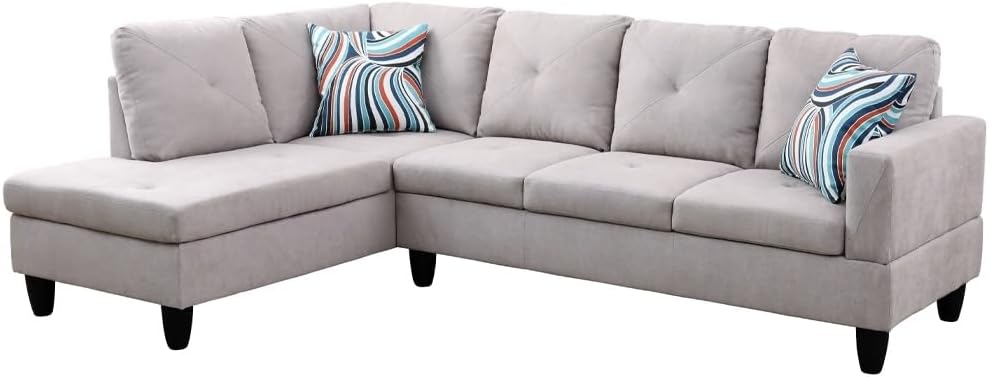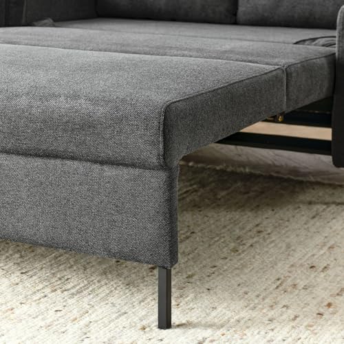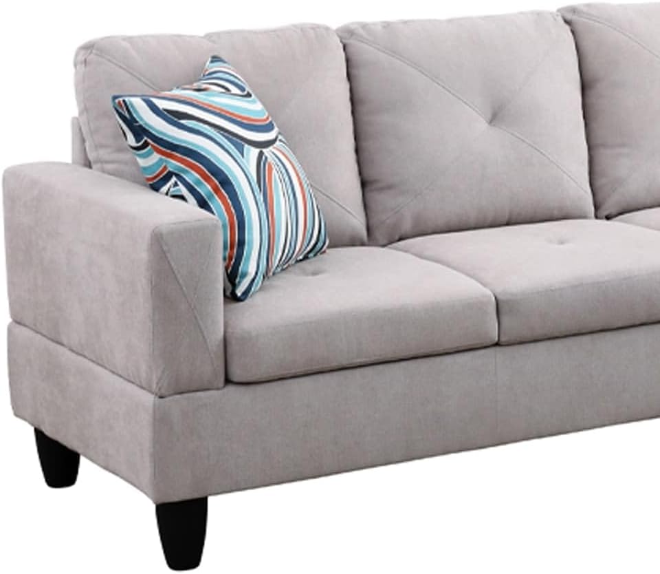 Overstock Upholstery Sleeper Sectional Sofa Grey with Storage Space, 2 Tossing Cushions
