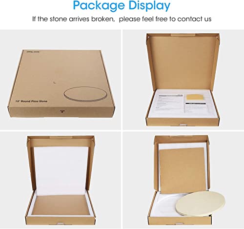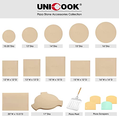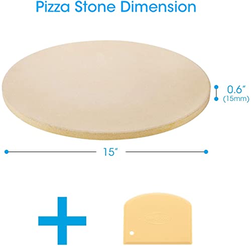 Unicook Pizza Stone for Grill Oven, 15 Inch Round Baking Stone, Heavy Duty Cordierite Pizza Cooking Pan, Thermal Shock Resistant, Ideal for Making Crisp Crust Pizza, Bread and More, Includes Scraper