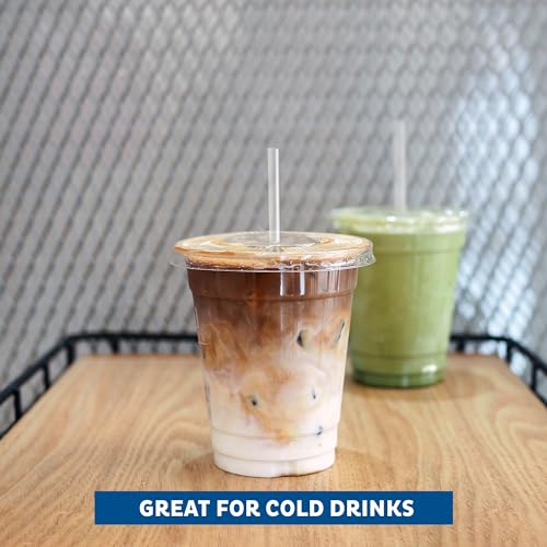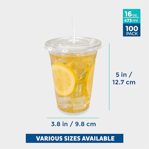 Freshware 20 oz Clear Disposable Plastic Cups with Flat Lids and Straws, 100 Pack Clear Plastic Cups Tumblers, Heavy-duty Party Glasses, Disposable Cups for Thanksgiving, Halloween, Christmas Party