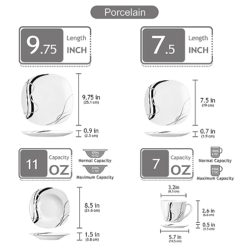 VEWEET, Series Nikita, 48-Piece Ceramic Porcelain Tableware Dinnerware Set with Brown Lines Patterns Dinner Sets with Dinner Plate, Soup Plate, Dessert Plate, Bowl Set, Service for 12