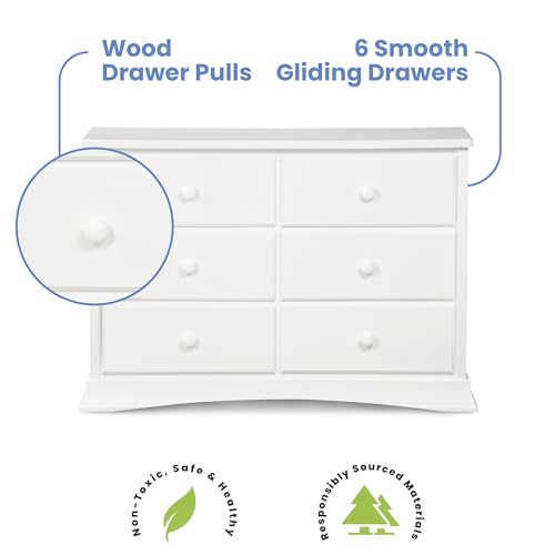 Delta Children Bentley 6 Drawer Dresser with Interlocking Drawers - Greenguard Gold Certified, White
