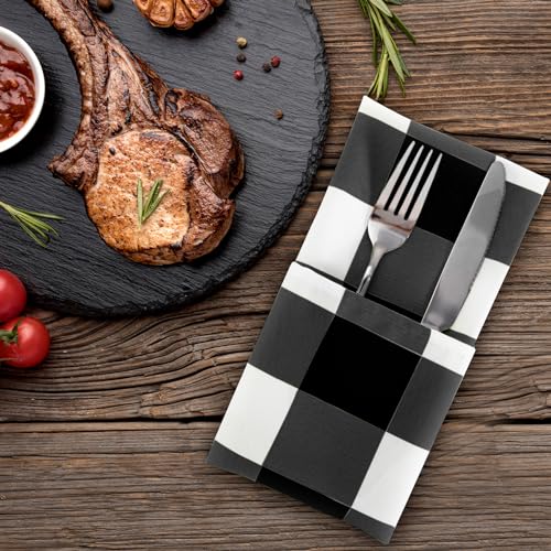 Buffalo Plaid Table Napkins Set of 25 Checkered Cloth Napkins 17x17 inch Washable Dinner Gingham Pattern Napkins Soft Napkins for Wedding Party Dining Banquet(Pink and White)