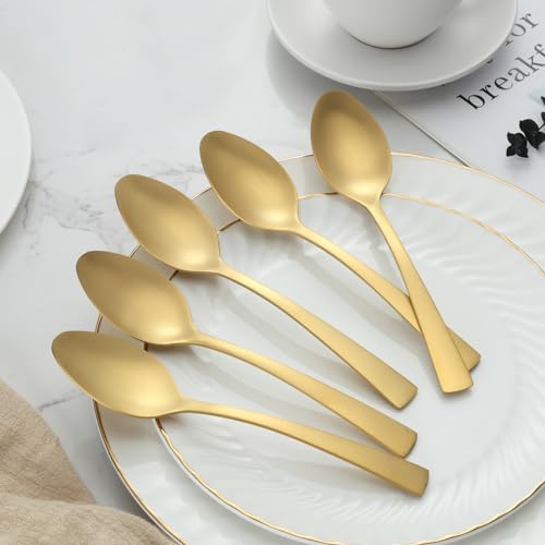 BEWOS 6.1-Inch Teaspoons Stainless Steel, 24-Piece Spoons Silverware Set, Mirror Polished & Dishwasher Safe, Small Spoons, Dessert Spoons, Blue Plastic Handle for Home, Kitchen or Restaurant